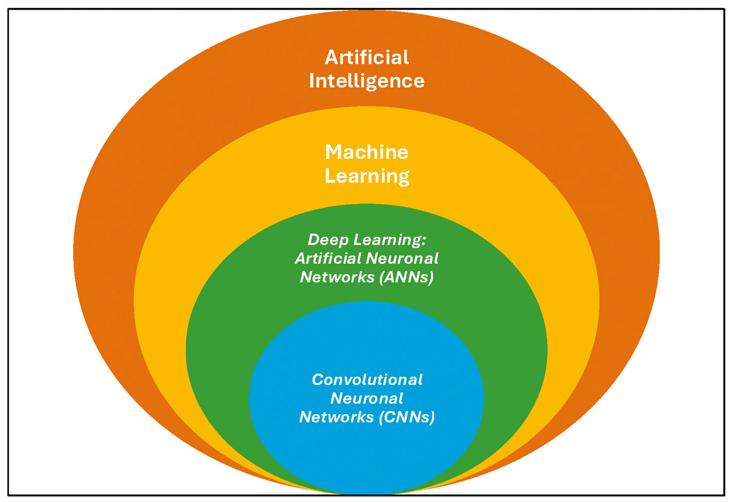 Machine learning (ML): This is a subdivision of AI that employs data to learn task performance through various statistical algorithms, instead of being programmed with pre-determined instructions and conditions. ML analyses diverse data formats such as images, numerical data, examples, and prior experiences through processes that include training, validation, and testing across various datasets [4,6].