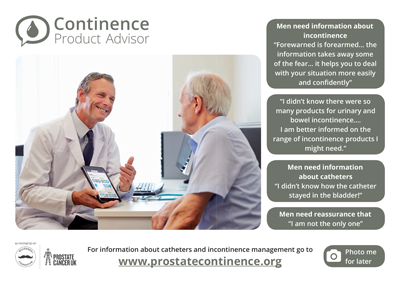 - A new Prostate Continence Website (PCW, www.prostatecontinence.org - Figure 1) which is part of the existing Continence Product Advisor below.