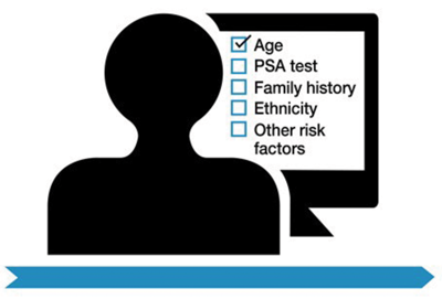 - The statements recommend that primary HCPs should discuss the PSA test with asymptomatic men who are at higher than average risk of the disease (including Black ethnicity and family history of prostate cancer) and that this should occur from the age of 45 (Figure 1).