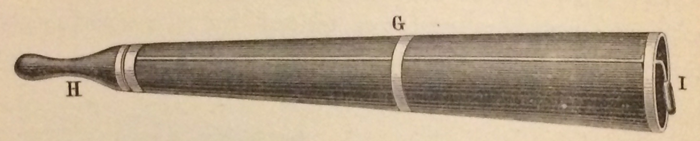 He was also an early user of the cystoscope. In fact David Newman was the first person in the world to use an electric light bulb to illuminate the human bladder. On 18th January 1883, Newman used an early Swann-Edison incandescent light bulb to illuminate a female bladder, this enabled him to see and catheterise the ureters. The bulb was at the end of a long handle and connected by wires to two Grove’s Cells (batteries) (Figure 2). Alongside this a cone like speculum made of vulcanite (an early hard rubber) was placed so Newman could look through into the bladder (Figures 3 and 4). The apex was movable so it could be rotated away with a small handle (labelled ‘L’ in figure 4) allowing Newman to look through the glass window in the end. Newman was able to catheterise the ureters and sample the urine to diagnose and lateralise renal disease. He described his technique: