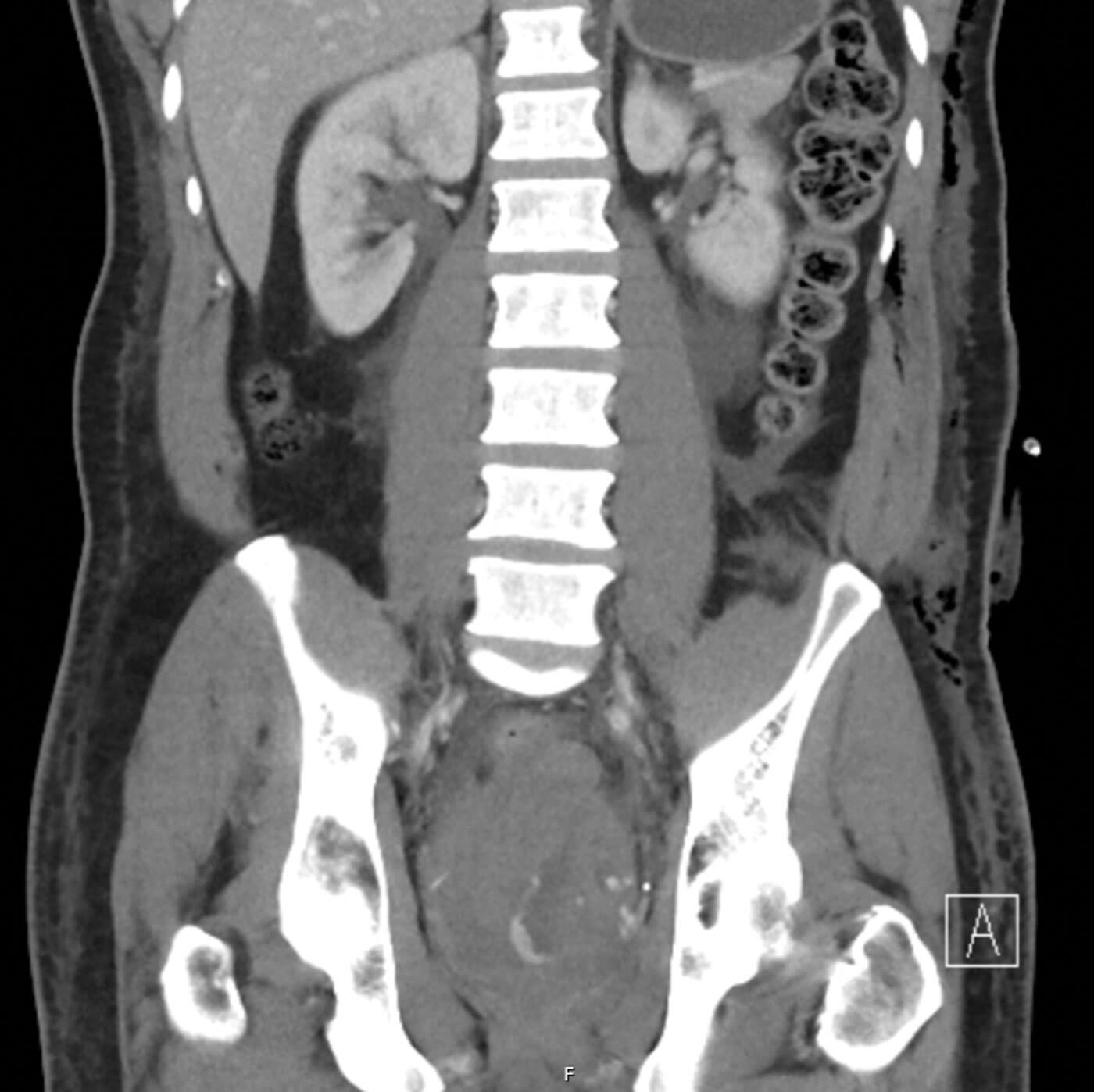 Figure 2: Contrast-enhanced CT pelvis demonstrating a pelvic haematoma