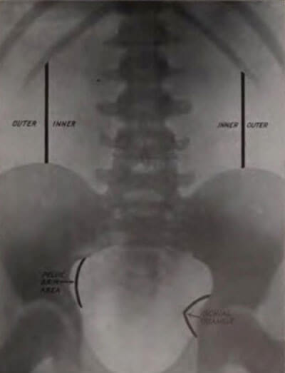 Figure 1: Fenwick’s suggestion of useful landmarks on a KUB x-ray.