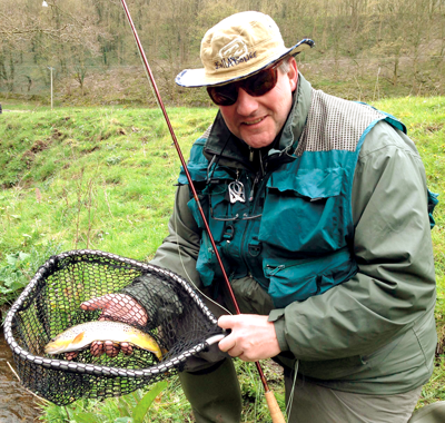 Duncan with a native wild brown trout caught