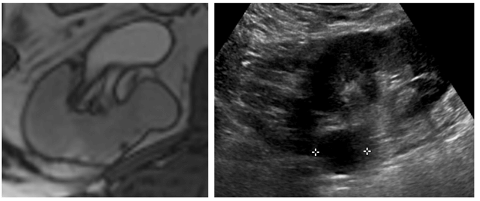 MRI is often very useful when a) renal CT characterisation is equivocal, b) the patient cannot undergo CT due to renal impairment or iodine contrast allergy, c) in young patients where it is important to limit radiation exposure, and d) for very small tumours (<1cm) where MRI may prove to be more diagnostic. Like CEUS, MRI is particularly useful in assessing septal thickening and enhancement in cystic renal lesions; this is of importance when there is uncertainty in differentiating Bosniak IIF from Bosniak III lesions on CT, both of which would have different clinical management.