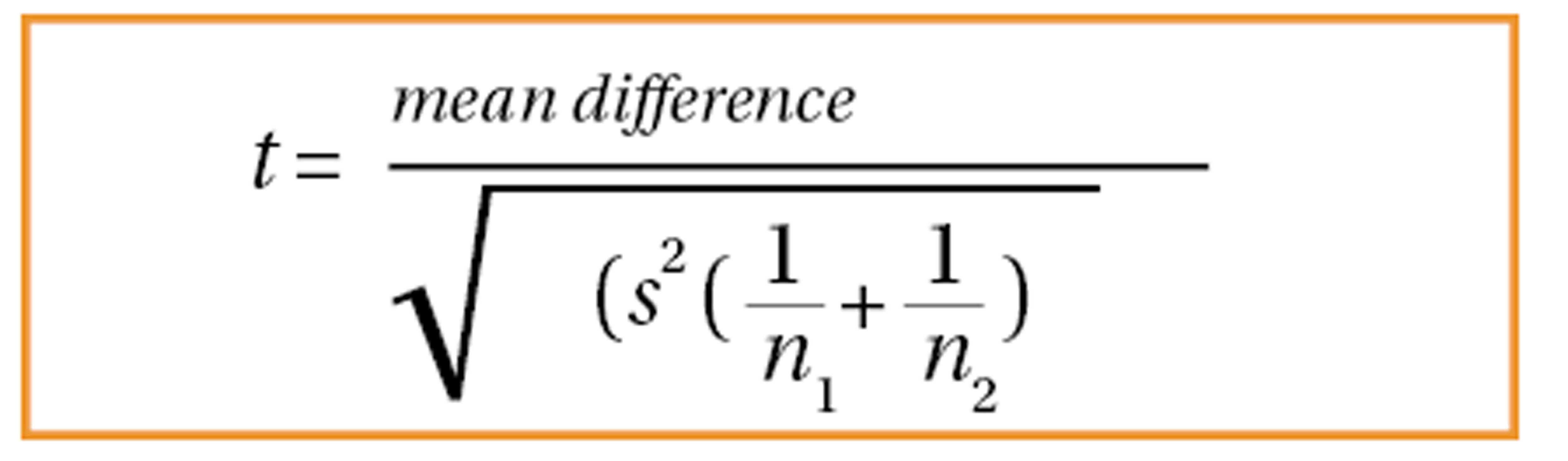 - Two sample t-test: comparing two group means that have been obtained from different populations, e.g. populations from two different countries. This is also known as the Student’s T-test and is the most commonly used. Figure 4 represents this, where s2 is the standard pooled error and n represents the number in each population. The standard pooled error is the average standard error from the two populations.