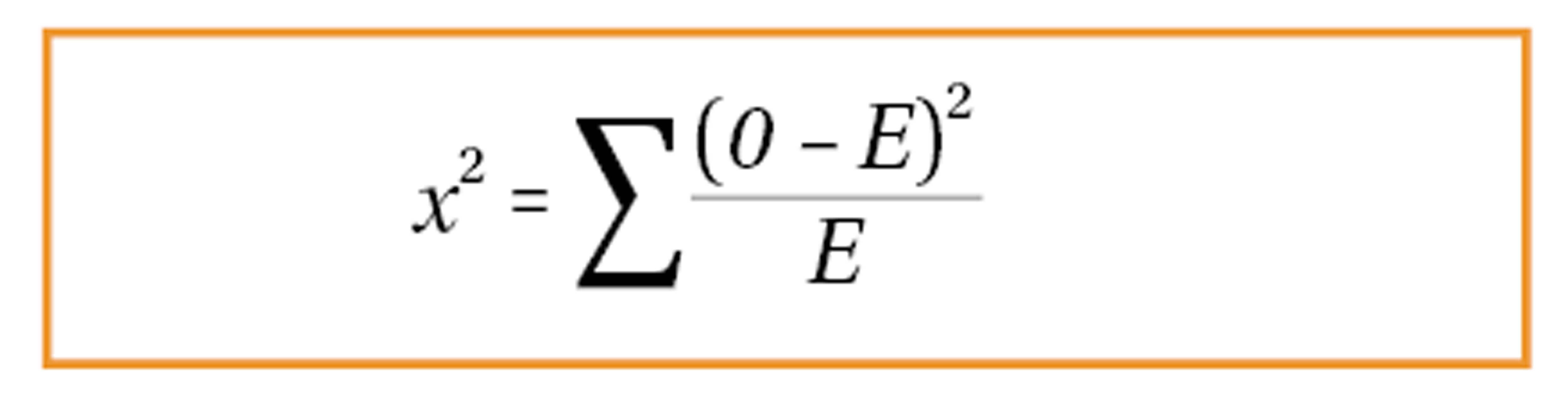 A much simpler formula compared to ANOVA and t-tests. We must take the difference between observed and expected values, square this, and divide by the expected value. We do this for each of different sets of observed and expected values and take the sum of this. We can then use the result to make a conclusion whether or not to reject the null hypothesis.
