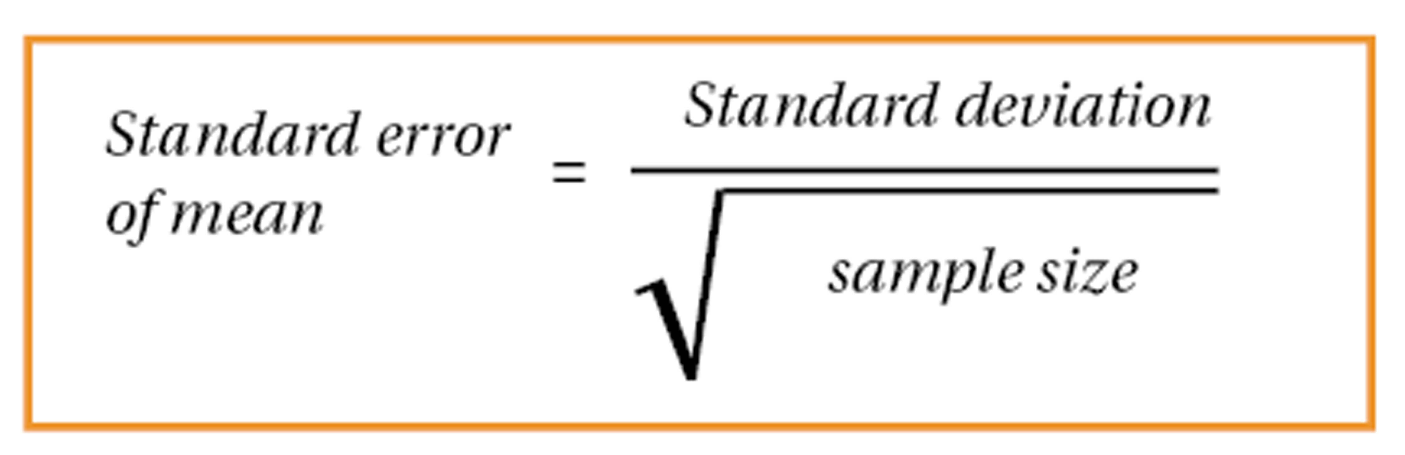 Confidence intervals are another example of a helpful method in interpreting results using statistical analysis - it tells us how much uncertainty there is around a particular parameter. Say we take a sample from a population of interest; we aim to work out a mean of a specific characteristic for the people using this sample, e.g. weight. However, the selection is only a tiny chunk of the population and randomly selected; hence there is a slight chance that the mean may not be representative of the actual value. Different samples of the same population may indeed end up giving a variety of diverse values - this is known as sampling error. This is where the use of a confidence interval can be helpful. A 95% confidence interval provides a range in which the population mean could lie, with a 5% chance that this is not the case [6]. So, there is a 0.95 probability of the population mean lying within the calculated range. The larger the sample size, the lower the sampling error and the narrower the confidence interval [4]. In order to calculate the confidence interval, we must consider the standard error.