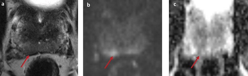 Abbreviated bpMRI protocols may be further adapted to make MRI more suitable for mass population screening. Weiss et al. described an ultra-fast 3T protocol taking five minutes and consisting of axial T2-weighted with a simultaneous diffusion-weighted multislice EPI sequence [9]. This rapid protocol had a similar diagnostic accuracy to a standard mpMRI in 52 patients who completed this at one centre.