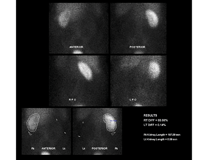 - What does the KUB x-ray and renogram show?