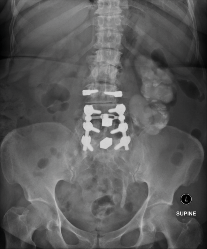 - What does this x-ray of the kidney, ureter and bladder (KUB) show?