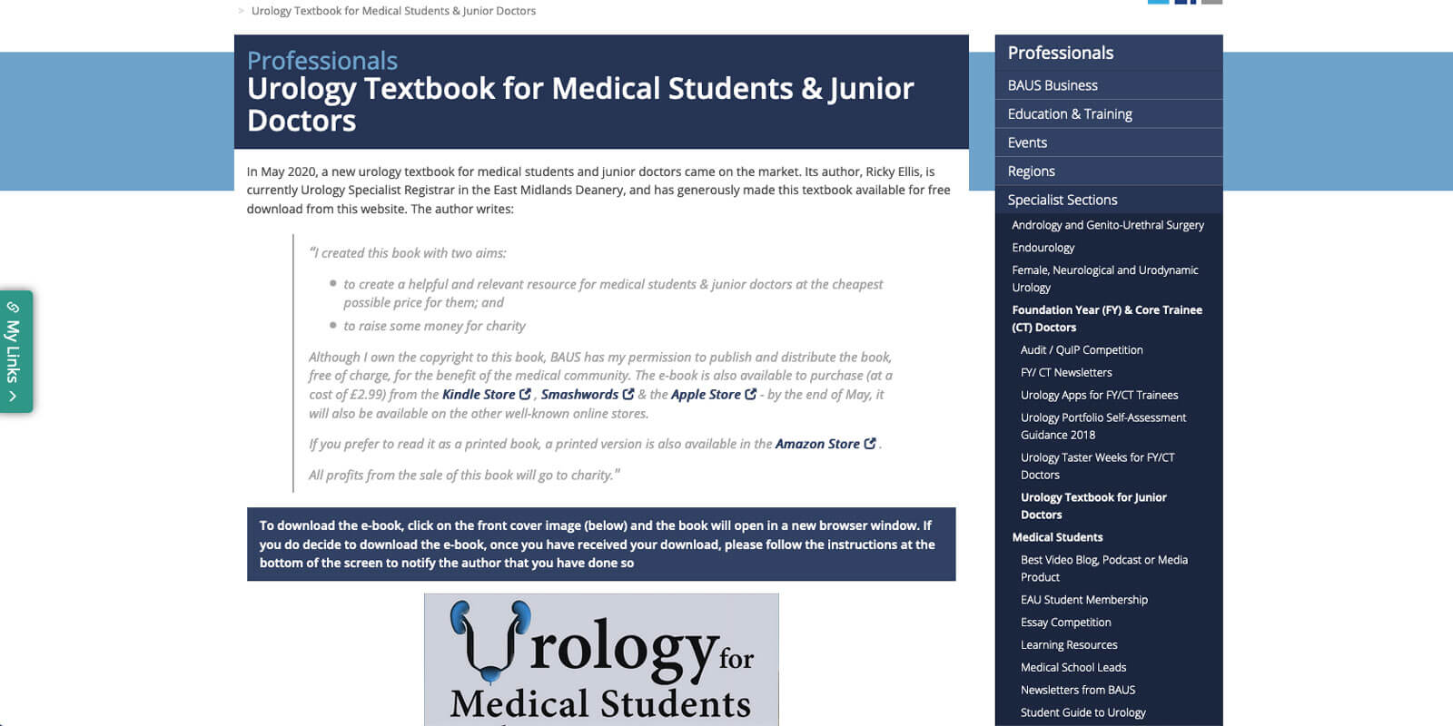The British Association of Urological Surgeons (BAUS) have long realised the importance of teaching the next generation through the medical student section of the BAUS website and the junior doctor section for foundation and core trainees. The latest addition is an excellent textbook for medical students written by Ricky Ellis. It is now available for free to UK medical students and junior doctors on submitting your email address from the link below [3]. Having carried out weekly remote medical student teaching since lockdown started, I can confidently say that the textbook is an excellent resource and was universally well received by all groups.