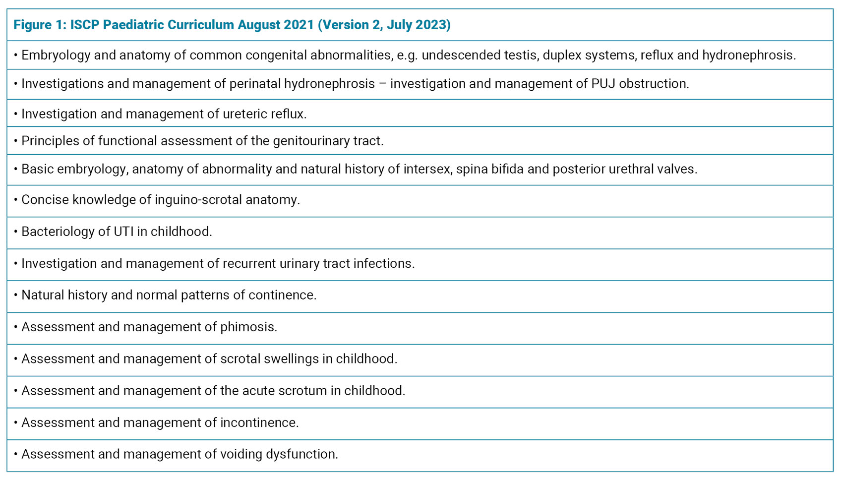 - Based on the Intercollegiate Surgical Curriculum Programme (ISCP) Urology Curriculum (Figure 1) and The Joint Surgical Colleges Fellowship Examinations (JSCFT) syllabus, common topics include urinary tract infections (UTIs), inguinoscrotal conditions, phimosis, undescended testes, duplex systems, reflux, hydronephrosis, posterior urethral valves (PUV), spina bifida, intersex, and enuresis.