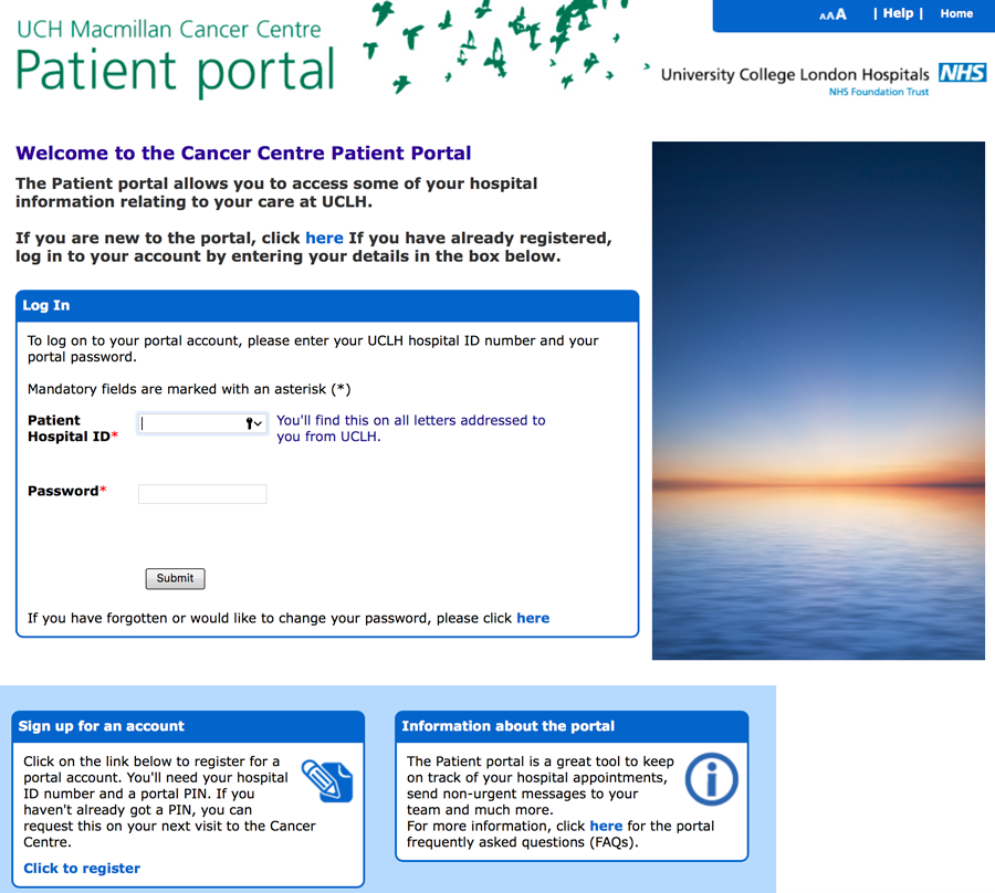 UCLH cancer centre patient portal