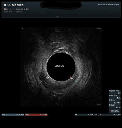 This procedure is indicated for assessment of the anal sphincter in patients with incontinence. This allows evaluation of the internal and external anal sphincters (sphincter thickness, length and scarring). It is pertinent to obtain history of obstetric trauma as well as any surgeries / intervention to aid assessment.