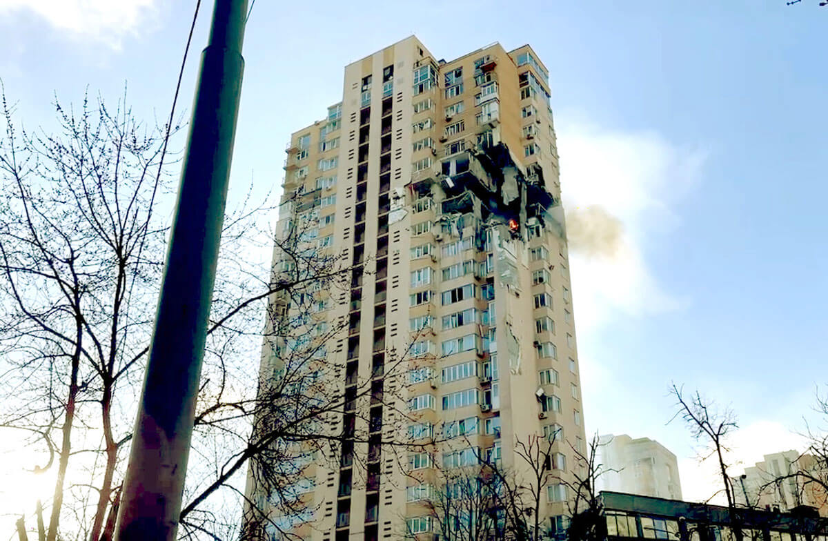 Missile attack on building adjacent to Clinic Visiobud, 26 February 2022.