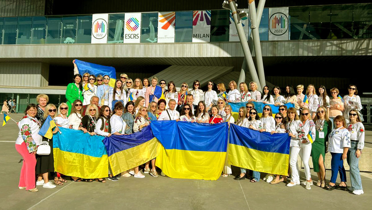 The delegation of the Society of Ukrainian Ophthalmic Surgeons at the ECSRS Congress in Milan, September 2022.