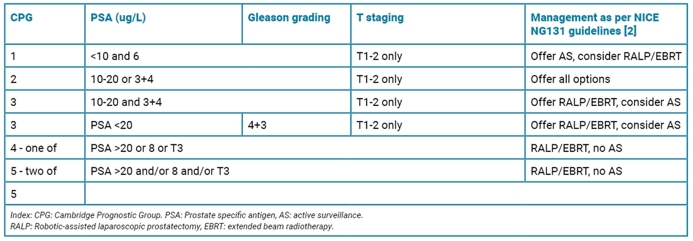 2. NICE. Evidence review for active surveillance, radical prostatectomy or radical radiotherapy in people with localised prostate cancer NICE guideline NG13, Evidence reviews. 2019.