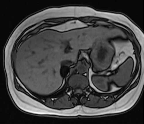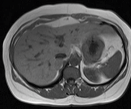 A 45-year-old male is found to have an incidental right adrenal lesion on CT. An MRI was arranged for further evaluation.