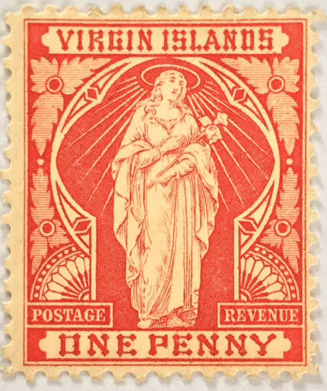 Figure 2: St Ursula on an 1899 postage stamp from the Virgin Islands.