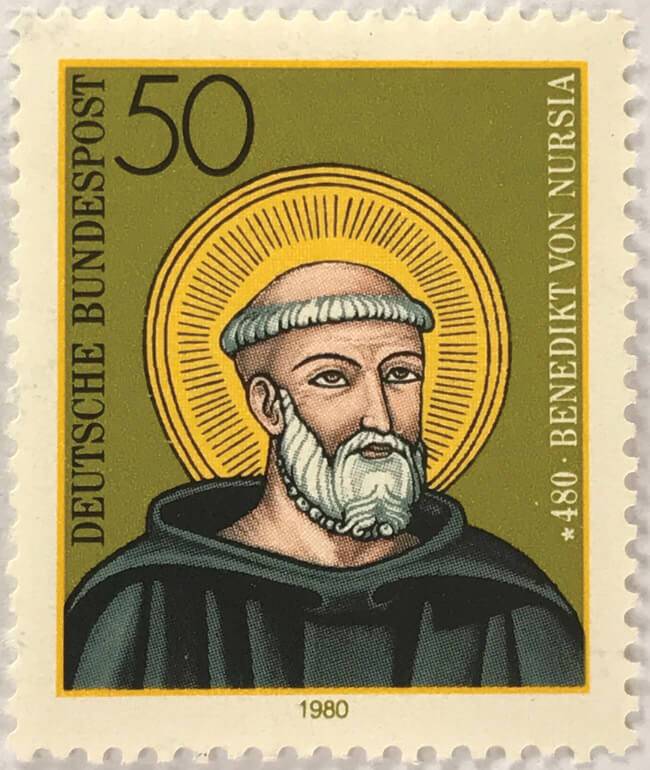 Figure 3: St Benedict on a 1980 German postage stamp.