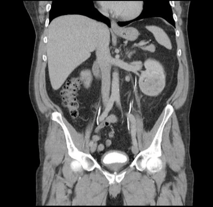 Figure 3: CT scan showing a left RCC in coronal section but there are no
