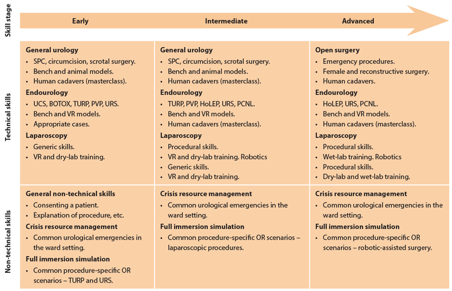 The suggested generic and additional proficiency-based simulation curriculum for urology training to enhance operating-room experience has been recently outlined in Nature Reviews Urology as demonstrated in Figure 3. With increased utilisation of these valuable educational adjuncts there is an increasing need to understand the effective integration of educational theories in order to optimise the outcome of both teaching and learning and to create a safe learning environment in true terms.