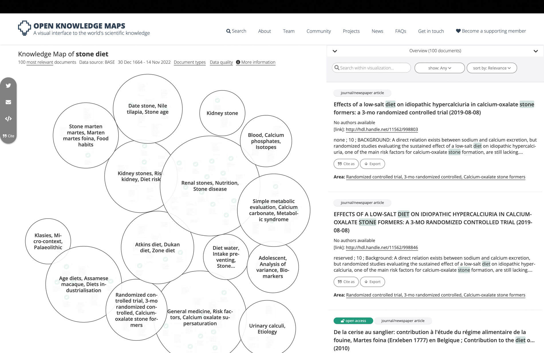 Building on the Semantic Scholar database, Connected Papers provides a visualisation of a field of study. You start by selecting a key paper and a visual representation of the field and related papers are created. By selecting each visual representation of a paper (a circle) an abstract (where available) is displayed on the right-hand side. The related papers are also displayed on the left side in citation number order. The selections and searches can be saved. Free searches are limited to five per month, and are unlimited at $3 per month.