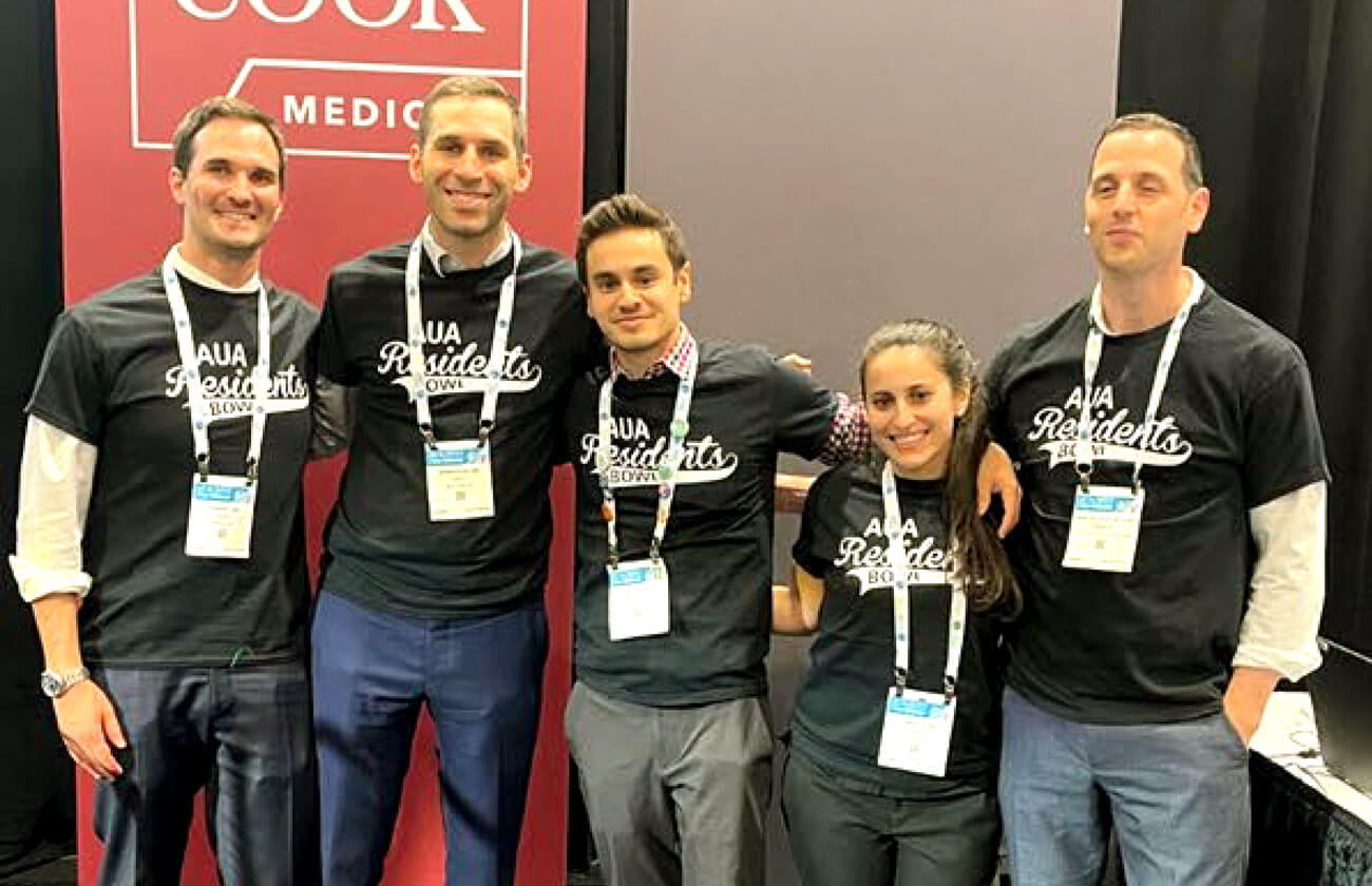 The Residents’ Bowl runs each year at the AUA Annual Conference and pits trainees / residents against each other in a University Challenge style quiz, testing residents’ knowledge on the different urological subspecialties, history of urology and general knowledge. There were eight teams known as ‘sections’ based on geographical location within the states. Each team consisted of four American / domestic residents and one international candidate. I was lucky enough to join the New York section as their international candidate (photo above). We sailed through the first round against North-Eastern and after swaggering on to the podium for the semi-finals with our new-found confidence we were promptly thrashed by the formidable and eventual competition winning South-Eastern section. Winners received the mutual respect of their fellow urology eggheads, a cash prize and a trophy. All participants received a rather fetching t-shirt. The competition was great fun and provided an excellent opportunity for networking and interesting discussion with peers across the pond.