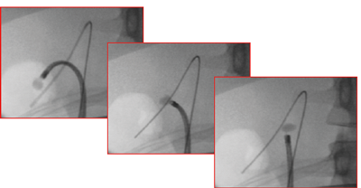 Figure 2. FURS relocation. These three images show a lower pole stone that has been secured in a basket and moved to the upper pole. The advantage is a straighter scope for treating the stone, avoiding the use of an activated laser fibre when the scope is deflected, which can risk fracture of the fibre with resultant laser damage to the scope. It is also more ergonomic to treat stones with the scope (and therefore surgeon’s wrist) straight.
