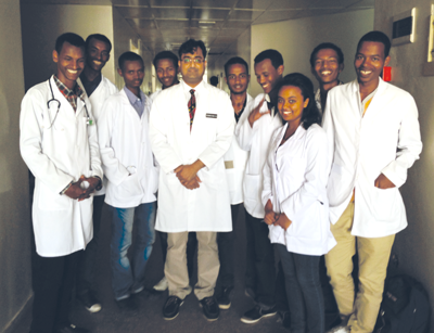 We reached Addis Ababa airport in the morning of 21 June 2015 ("or 10th month of the year 2007, as per Ethiopian calender!"). We were welcomed by the local consultant Dr Aberra and trainee Getaneh Teferi (Getch). As we stepped outside the airport, the fresh morning breeze brought with it a sweet scent which I later noticed to be perpetually present. We started our five-hour road journey to Hawassa in the hospital van. It was delightful to sit in the back of the van and travel through the villages of Ethiopia. The muddy roads, barren lands and the round thatched-roof huts in the villages had a beauty of their own. Halfway through our journey we stopped at a traditional coffee shop, which gave me the first flavour of that wonderful country. It was there that I was introduced to macchiato, my favourite Ethiopian coffee, and this has developed into an everlasting relationship.