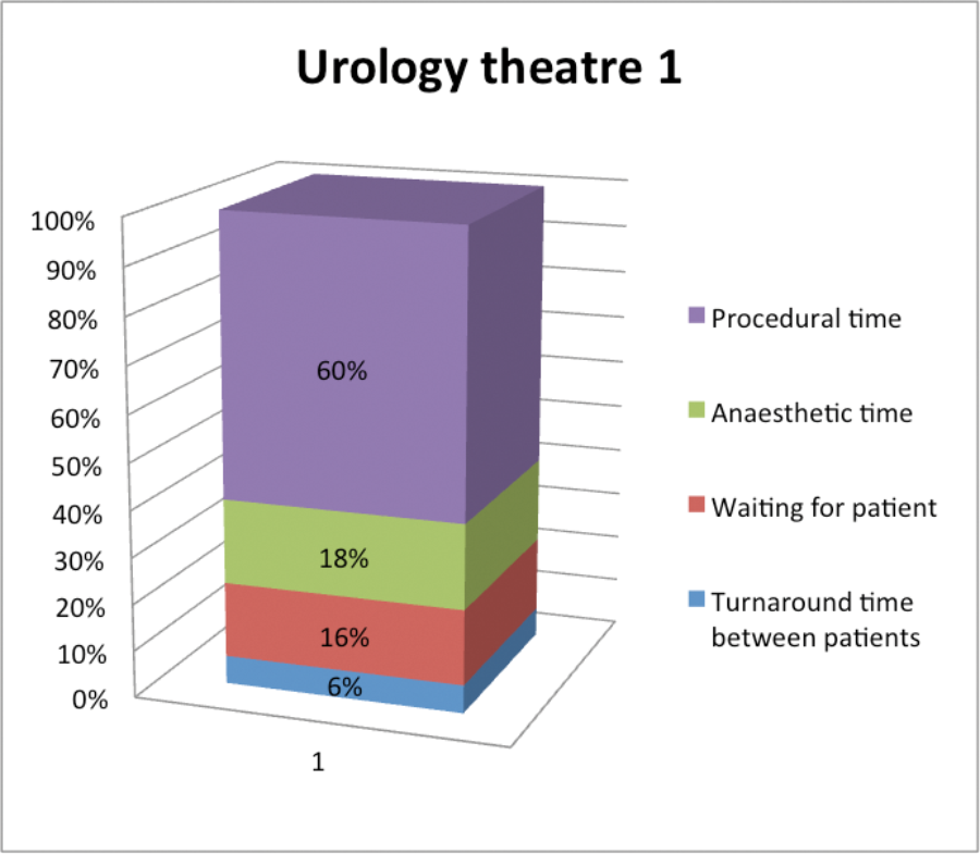 Urological procedures make up a significant proportion of the 4.2 million surgical operations carried out each year in the UK. The specialty’s high turnover and increasing caseload, particularly in the area of endourology, make the subject of theatre utilisation and efficiency relevant in this current financial climate. The Productive Operating Theatre (TPOT) is a theatre improvement programme designed by the UK National Health Service and has been shown to improve efficiency such as start / overrun and times in urology theatres [6]. In this study, we undertook an audit in a large tertiary referral centre to record patterns of theatre usage in urology theatres and identify areas for improvement.