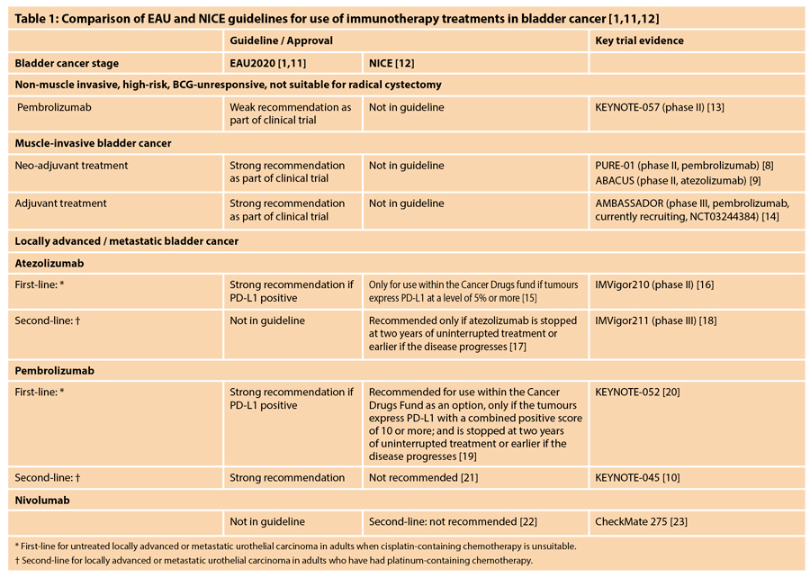 Immunotherapy in the EAU and NICE guidelines for the treatment of bladder cancer