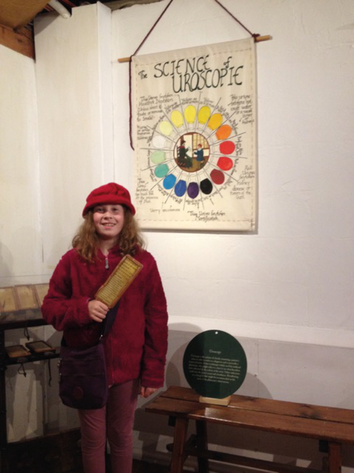 Figure 2: The Museum of Urology Junior Curator demonstrating a mediaeval urine chart.