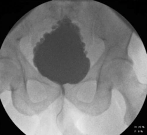 Figure 1: Fir tree bladder on VCMG (with reflux).