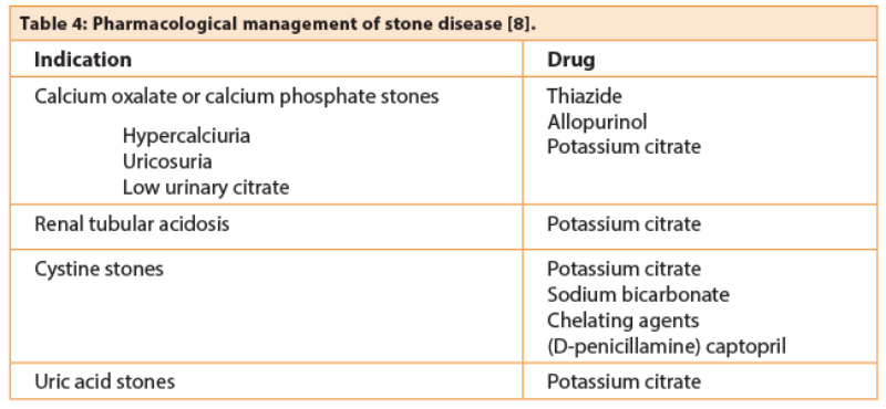 The management of these patients is divided between pharmacologists, renal physicians and specialist clinics but a detailed discussion of the management is outwith the scope of this article. The management of infection stones is not usually based on metabolism but rather on complete stone clearance, prevention of infection and promotion of urinary drainage.
